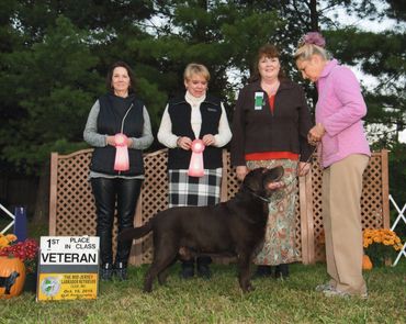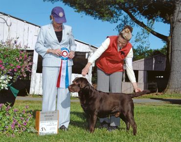 Father of Kate, grandfather of Jamie, Molly and Bree. An all around Labrador. Beautiful in the show ring and hard working in the field. Produced lovely well balanced puppies, dark chocolate, beautiful heads, outstanding temperaments. Frozen semen available